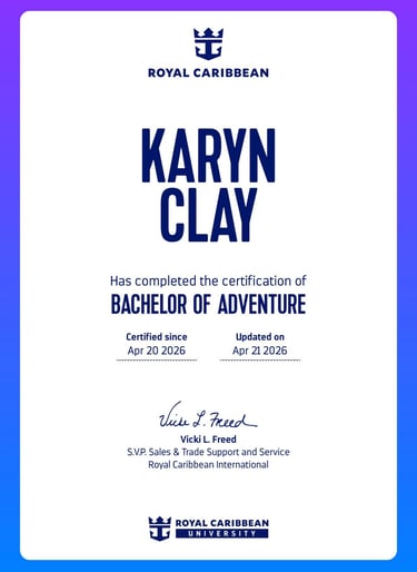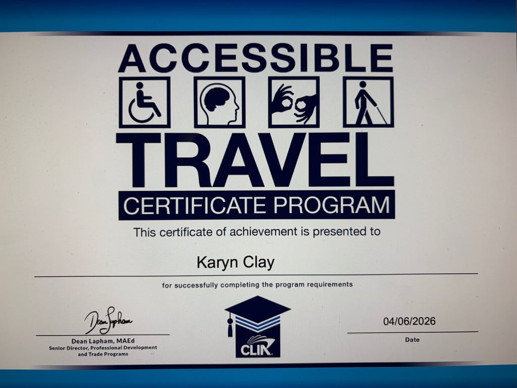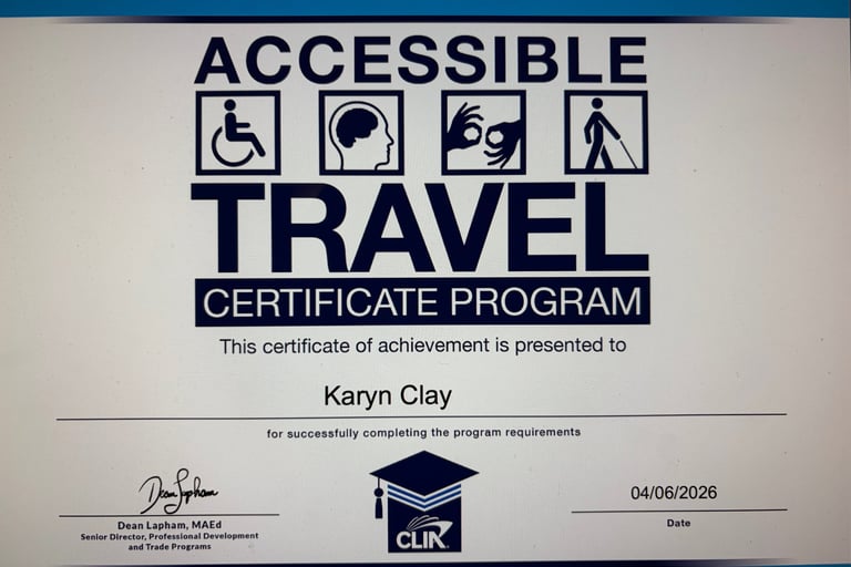 Certified in Cruise Lines International Association's (CLIA) Accessible Cruise Travel Certificate Program