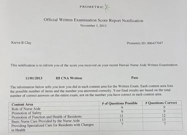 CNA Course: 1999 Keauhou Rehabilitation Center & Renewal via Prometric
