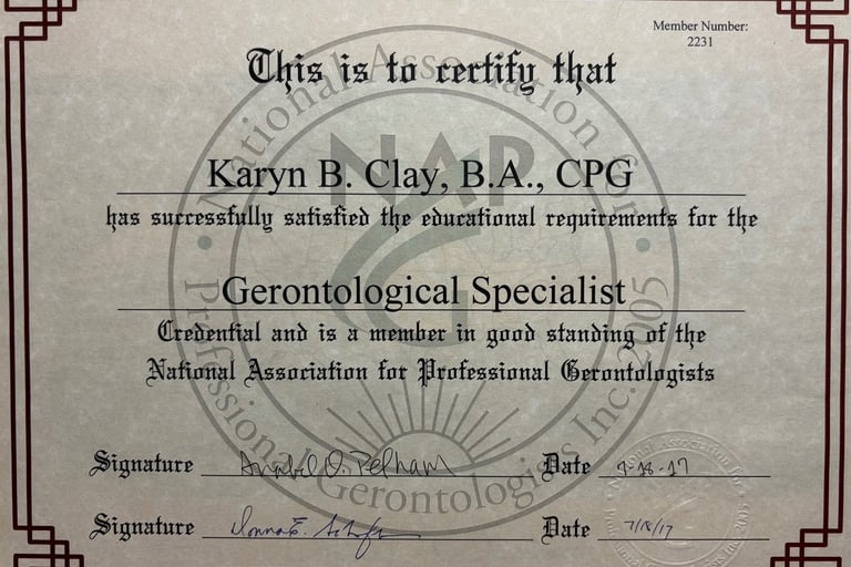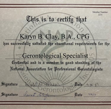 Aloha! My name is Karyn Clay and I'm a Gerontological Specialist who has worked in care homes, long-term care facilities, adult day centers and home care agencies for over 32 years. After earning a BA in Gerontology back in 1998, I moved to the Big Island of Hawai'i where I launched my own adult day center and care home. I cared for the older adults who utilized my businesses to the best of my ability for a total of 22 years. We enjoyed group and individualized activities, socialization, and working together to manage activities of daily living. I later served as a care manager for a home care agency, where I found genuine fulfillment in coordinating travel experiences for clients who needed supportive companionship along the way.